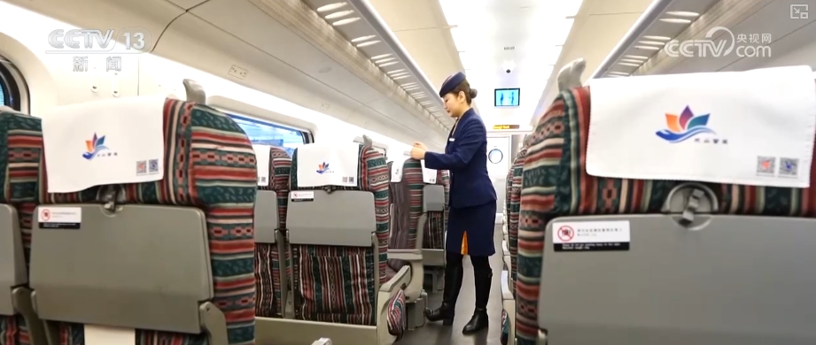 國鐵烏魯木齊局烏魯木齊客運段C845次列車員阿依江介紹,動車座椅上的這個犄角叫“羊角把”,是旋轉(zhuǎn)座椅的“小把手”。當(dāng)動車組列車抵達終點站,再返程時列車運行方向變了。為了讓旅客面向列車前進的方向,這樣視覺更加舒適,他們會在終點站把座椅旋轉(zhuǎn)180度。像這樣腳踩座椅下方的旋轉(zhuǎn)腳踏,再用手抓住“羊角把”,輕輕一拉就能調(diào)轉(zhuǎn)座椅方向。