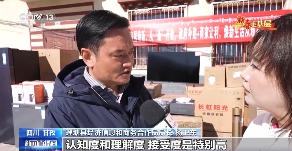 理塘縣經(jīng)濟(jì)信息和商務(wù)合作局局長(zhǎng) 楊衛(wèi)東:老百姓對(duì)以舊換新認(rèn)知度和理解度、接受度特別高,現(xiàn)在家電普及率達(dá)到80%以上,家電銷(xiāo)售的數(shù)量比往年增長(zhǎng)30%以上。