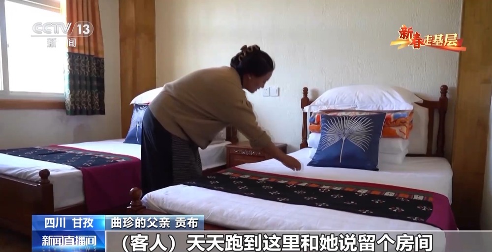 曲珍還帶著記者參觀了她的家,這是一個(gè)兩室一廳的民宿。2018年,查卡村利用豐富的地?zé)豳Y源,村里打造“溫泉小鎮(zhèn)”,做大做強(qiáng)集體經(jīng)濟(jì),曲珍家拿出5000元入了股。沒(méi)想到,第二年溫泉小鎮(zhèn)就收入40多萬(wàn)元,在旅游局的扶持下,曲珍也辦起了民宿。