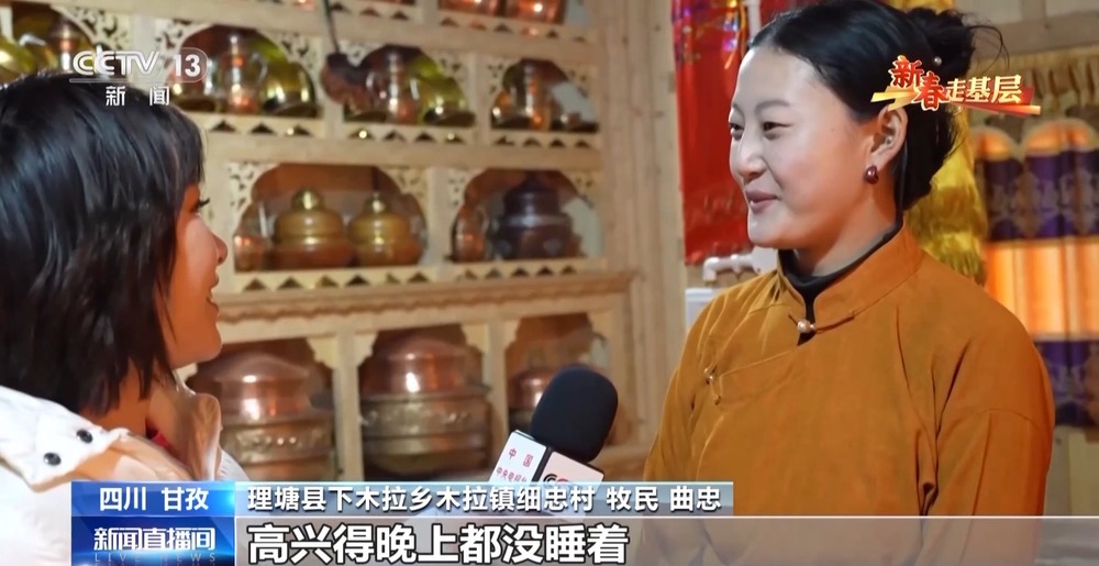 總臺(tái)央視記者 唐蕾:這里是海拔4100米的318國(guó)道理塘線,在我身后來(lái)往不少車(chē)輛,順著這條公路,可以到達(dá)理塘縣22個(gè)鄉(xiāng)鎮(zhèn),通過(guò)這幾天走基層的采訪,我們也感受到道路的打通,不僅建立起川西高原和外界的聯(lián)通,而且,隨著今年以舊換新政策的落地,越來(lái)越多的精品好物也更快地進(jìn)入到牧民家中,滿足了老百姓對(duì)美好生活的向往。