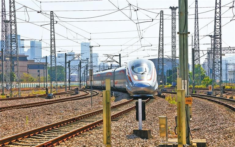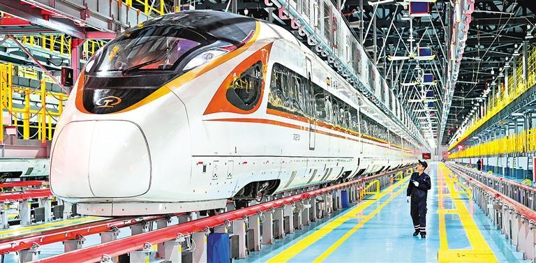 系統(tǒng)全面整體領(lǐng)先。2017年2月25日10時(shí)33分,G65次列車駛出北京西站,運(yùn)行于京廣高鐵,標(biāo)志著中國自行設(shè)計(jì)研制的、擁有全面自主知識(shí)產(chǎn)權(quán)的中國標(biāo)準(zhǔn)動(dòng)車組樣車正式上線運(yùn)營。同年6月25日,中國標(biāo)準(zhǔn)動(dòng)車組被正式命名為“復(fù)興號(hào)”?!皬?fù)興號(hào)”中國標(biāo)準(zhǔn)動(dòng)車組的誕生和運(yùn)營,標(biāo)志著中國高鐵邁出了“從追趕到領(lǐng)跑”的關(guān)鍵一步,我國鐵路技術(shù)裝備制造迎來了一個(gè)新時(shí)代。