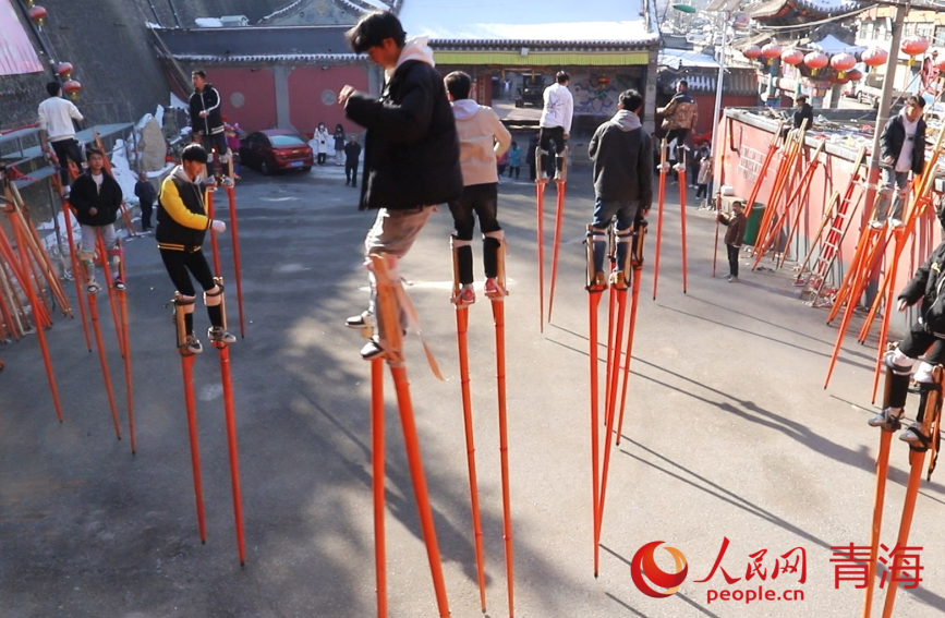 綁蹺、試蹺、定蹺……青海省西寧市湟中區(qū)魯沙爾鎮(zhèn)火神廟,魯沙爾高蹺隊(duì)迎來(lái)了春節(jié)前最后一次排練。“從臘月初一到現(xiàn)在二十多天了,今年大家積極性很高,報(bào)名的人也多,排練效果不錯(cuò)?!弊龊脺?zhǔn)備,隨著社火音樂(lè)的鼓點(diǎn)舞動(dòng)起來(lái),魯沙爾鎮(zhèn)高蹺協(xié)會(huì)會(huì)長(zhǎng)李玉龍站在臺(tái)階上看著排練隊(duì)形。