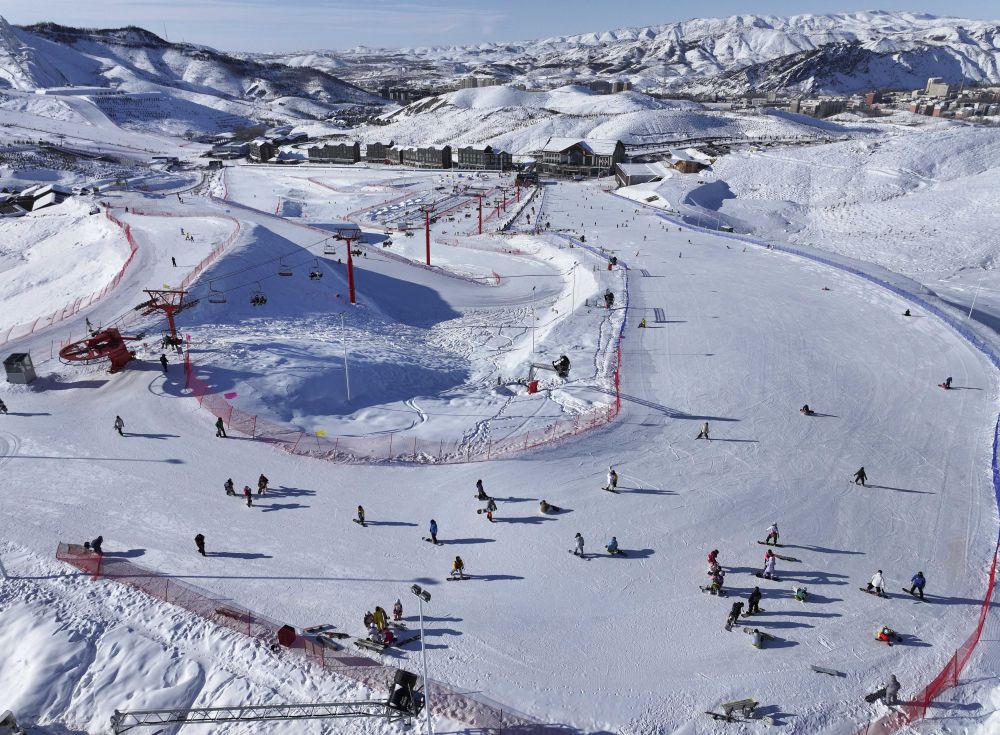 1月25日,游客在阿勒泰市將軍山國際滑雪度假區(qū)滑雪。
