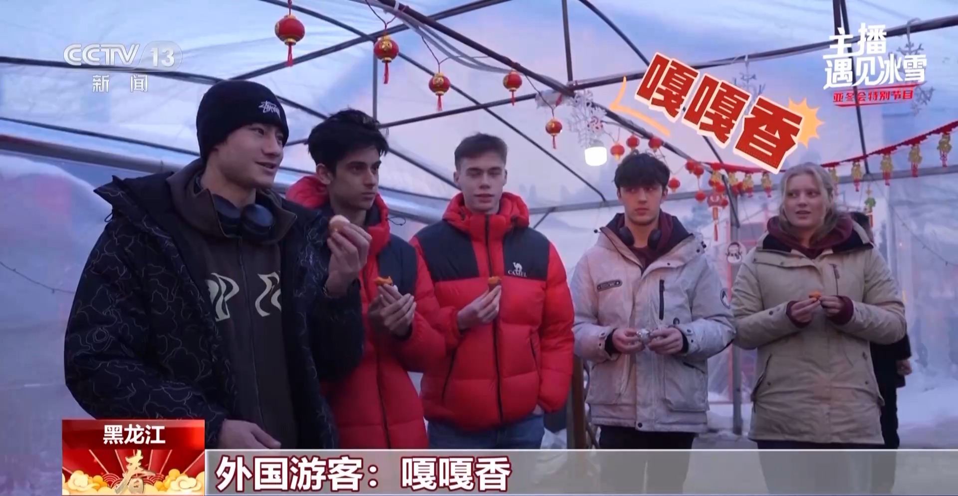 聊著聊著,北星村來(lái)了一個(gè)外國(guó)旅行團(tuán),他們吃著紅薯擼著串,村民還熱情地端上了東北餃子。大家吃得怎么樣?外國(guó)游客用中文表示:嘎嘎香!