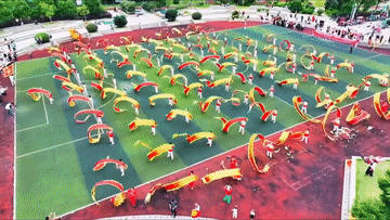 在當?shù)匾恍W校,舞彩帶龍成為“特色”課間操。