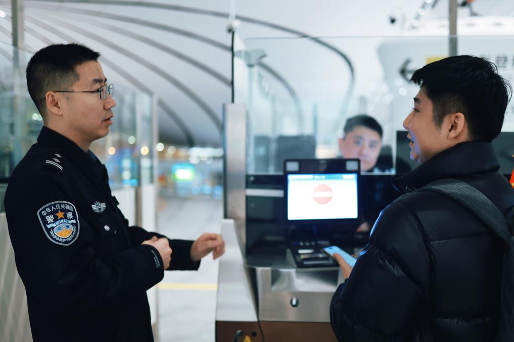 有周到的歡迎,也有詳實的問詢。得知年輕人姜勝天要單獨前往某國旅游,執(zhí)勤民警詳細(xì)了解他的出游計劃,核實了接待方情況才放行。