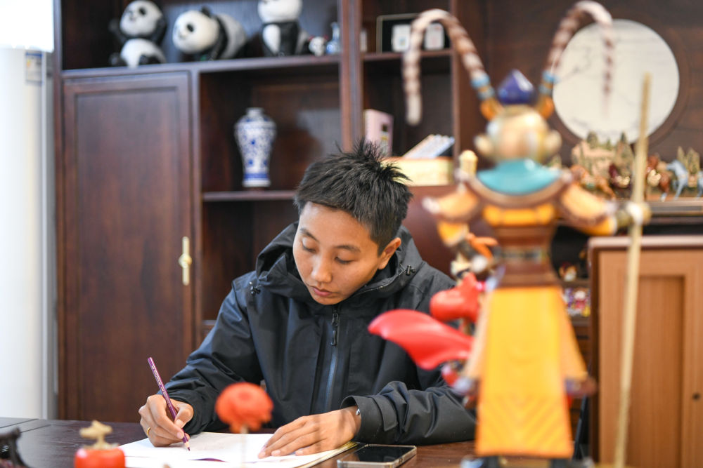 邱玥在工作室為下一個燈會項目進行設(shè)計(1月27日攝)。