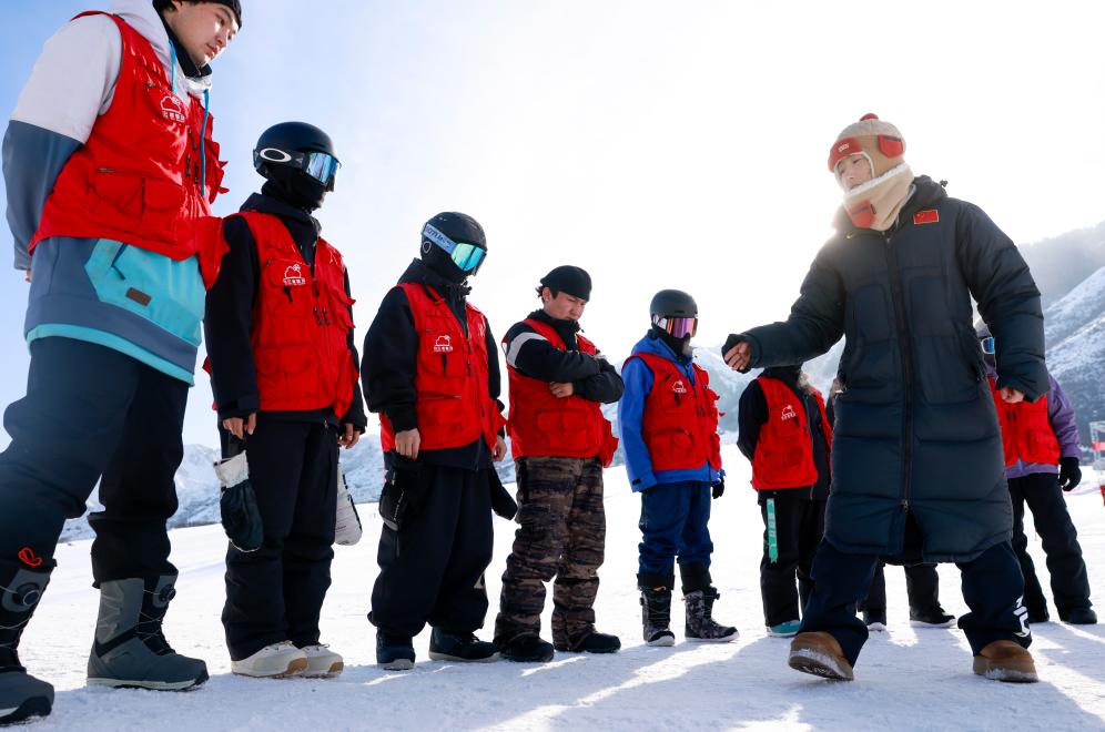 2024年12月25日,在位于烏魯木齊縣的新疆白云國(guó)際滑雪場(chǎng),烏魯木齊縣永豐中學(xué)的學(xué)生在上滑雪課。新華社記者 王菲 攝