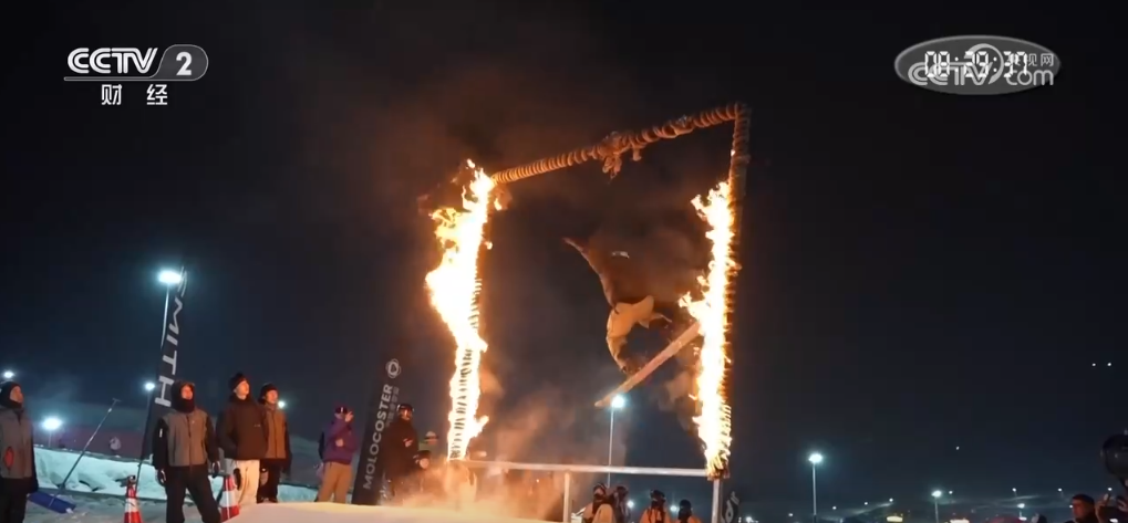 春節(jié)期間,阿勒泰游客數(shù)量突破新高。大年初四一天,將軍山滑雪場(chǎng)接待游客量就突破1.8 萬人次。雪友們白天暢滑粉雪,晚上還能體驗(yàn)刺激的滑雪穿火圈,從雪道上腳踏雪板快速滑下,一躍而起,穿過燃燒的火圈。