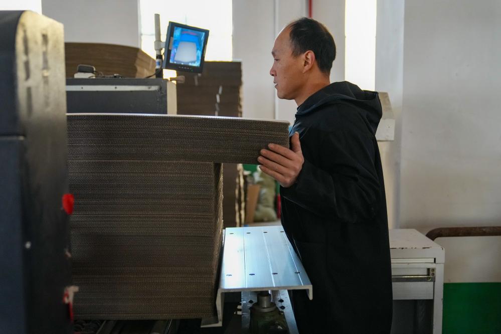 春節(jié)前后,位于大瑤鎮(zhèn)的瀏陽市凱洋包裝廠里,印刷、裁剪、折疊、黏合……自動(dòng)化生產(chǎn)線每天下線5萬多個(gè)紙箱。