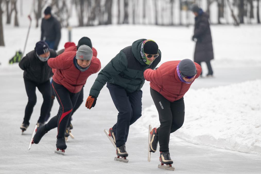 1月7日,滑冰愛(ài)好者在哈爾濱丁香公園內(nèi)滑冰。新華社記者 張濤 攝