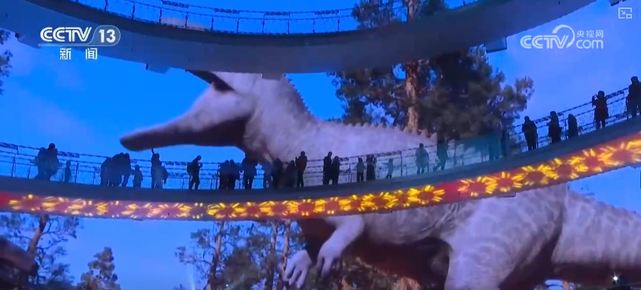 春節(jié)期間循環(huán)播放的恐龍科學(xué)藝術(shù)展、春節(jié)主題展、春節(jié)檔電影精編等“四屏聯(lián)動(dòng)”原創(chuàng)視頻,將光影資源與科教文化有機(jī)融合。特別是恐龍科學(xué)藝術(shù)展深受小朋友喜愛(ài)。展覽現(xiàn)場(chǎng),巨幅卷軸屏以直觀的方式展現(xiàn)恐龍的樣貌與龐大體型,邀請(qǐng)觀眾與這些史前巨獸“比高”。環(huán)屏則將播放引人入勝的動(dòng)畫(huà)視頻,生動(dòng)再現(xiàn)侏羅紀(jì)中期恐龍的生活場(chǎng)景,讓觀眾仿佛可以跟隨恐龍的步伐,重返遠(yuǎn)古世界。
