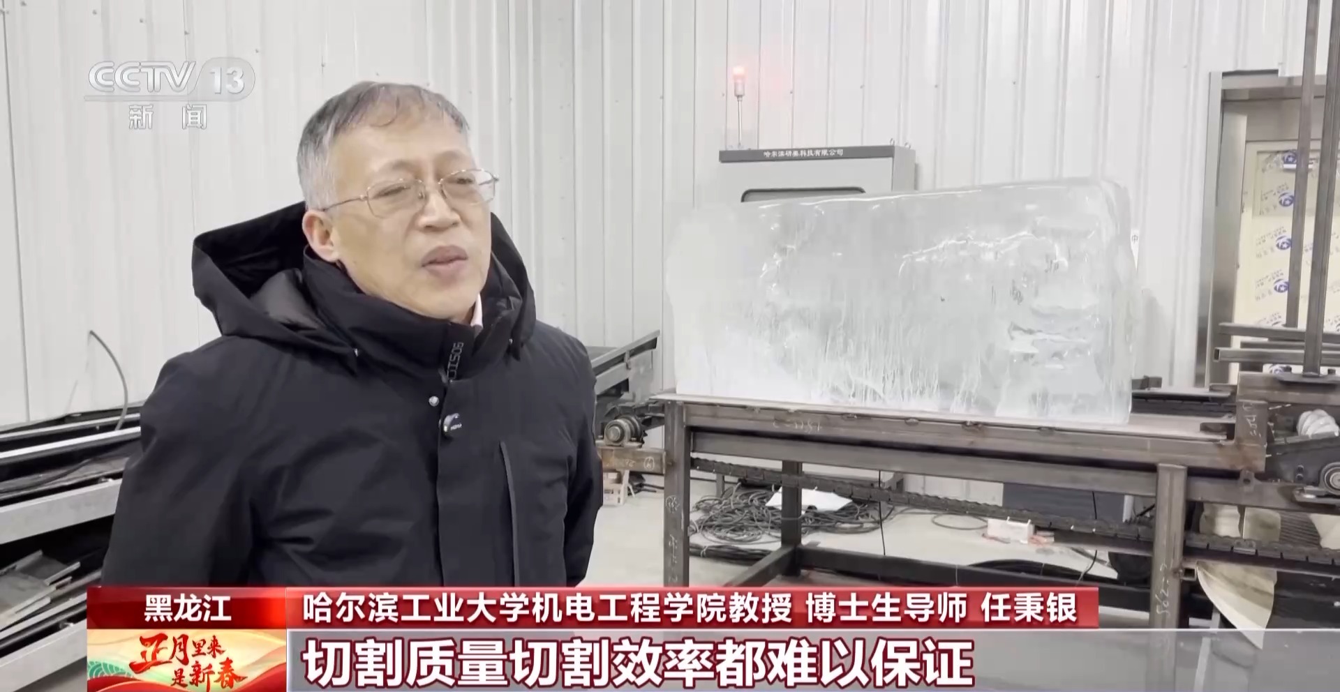 哈爾濱工業(yè)大學機電工程學院教授、博士生導師 任秉銀:這么多年來建冰雕設(shè)施用的冰一直都是人工在切,使用手工鋸,切割質(zhì)量切割效率都難以保證。在這種情況下,對智能自動化生產(chǎn)標準冰砌塊的需求十分迫切。