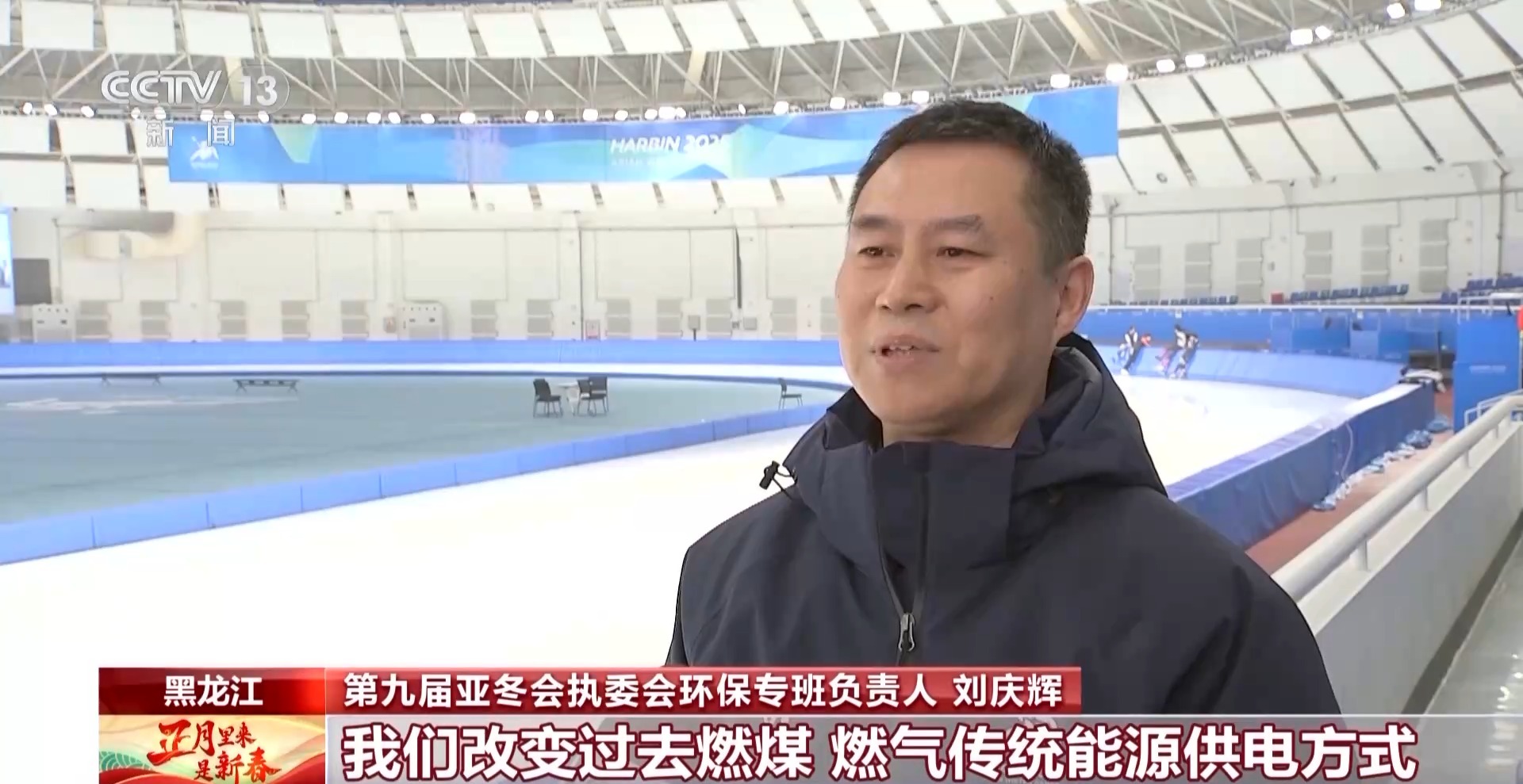 第九屆亞冬會執(zhí)委會環(huán)保專班負責人 劉慶輝:我們改變過去燃煤、燃氣傳統(tǒng)能源供電方式,立足我們黑龍江省本身豐富的風力等自然資源,全面開發(fā)使用綠色清潔能源,本地的這些發(fā)電企業(yè)產(chǎn)生風能、太陽能等清潔能源將源源不斷地輸入我們的各個場館,全面滿足我們賽時各個場館的用電需求,在亞冬會史上是首次實現(xiàn)綠電100%全覆蓋。