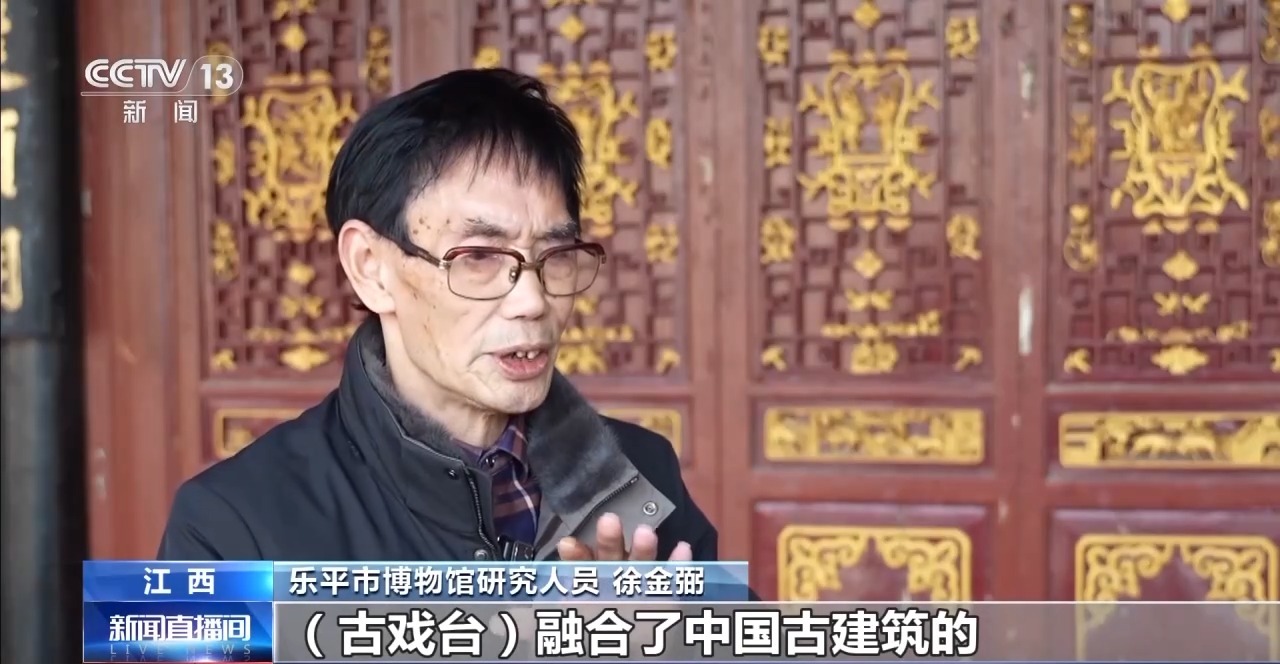 樂平市博物館研究人員 徐金弼:古戲臺融合了中國古建筑的基本重要的元素,雕工精湛,把徽派雕刻藝術(shù)全部集在一起。