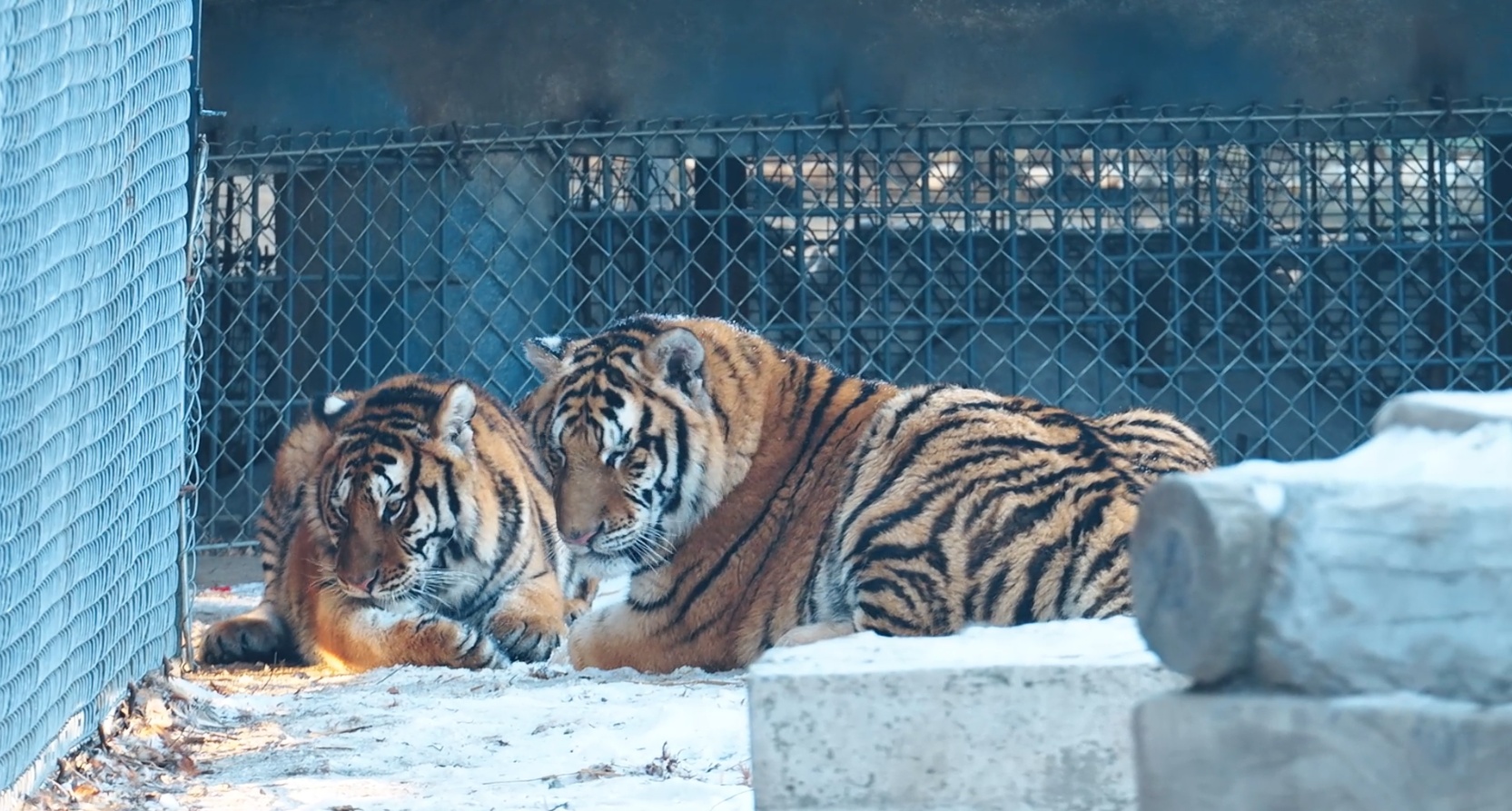 飼養(yǎng)員 楊忠亮:它們兩個(gè)現(xiàn)在是在一歲多快到一歲半了,體重也能達(dá)到150多斤以上了。我們給它提供了一個(gè)比較大的活動(dòng)場(chǎng)地,讓它們能活動(dòng)得比較開闊,能更好的與游客去見面。這個(gè)年齡段也是非常愛打愛斗愛鬧的年齡。游客隨時(shí)來到我們東北虎林園,也會(huì)隨時(shí)的看到它們和游客很好的一個(gè)互動(dòng)。