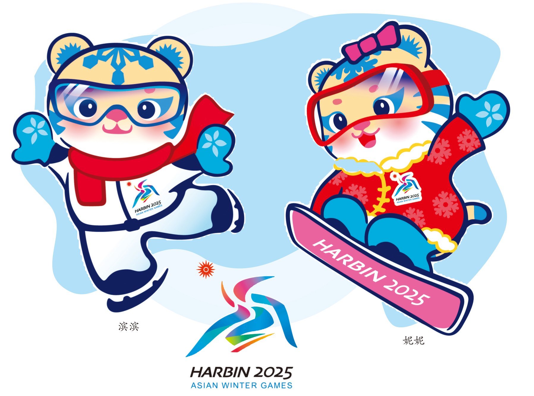 本屆亞冬會(huì)的吉祥物,是兩只可愛的東北虎。腳上穿著冰刀的那只小老虎,名字叫“濱濱”,哈爾濱的“濱”;另一個(gè)腳踩滑雪板的,名叫“妮妮”,諧音是“您”。合在一起,寓意為“哈爾濱歡迎您”。