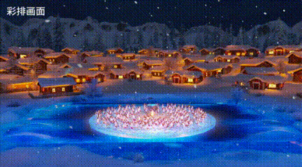 天寒地凍的松花江上,整齊劃一的采冰漢子奮力揮舞冰镩,采出了對這片土地的熱愛、對美好生活的向往、對新春的祝福。當(dāng)“頭冰”破江而出,自地屏翻騰至立屏之中,為亞冬健兒送去“拔得頭籌”的美好祝福。