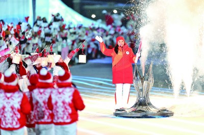 2月7日,第四棒火炬手張虹點燃主火炬。