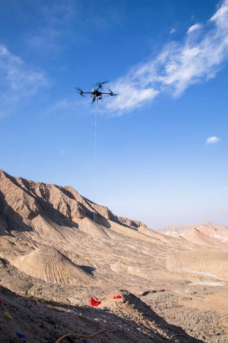 運(yùn)載無(wú)人機(jī)進(jìn)行吊裝作業(yè)。中國(guó)石油東方物探公司供圖
