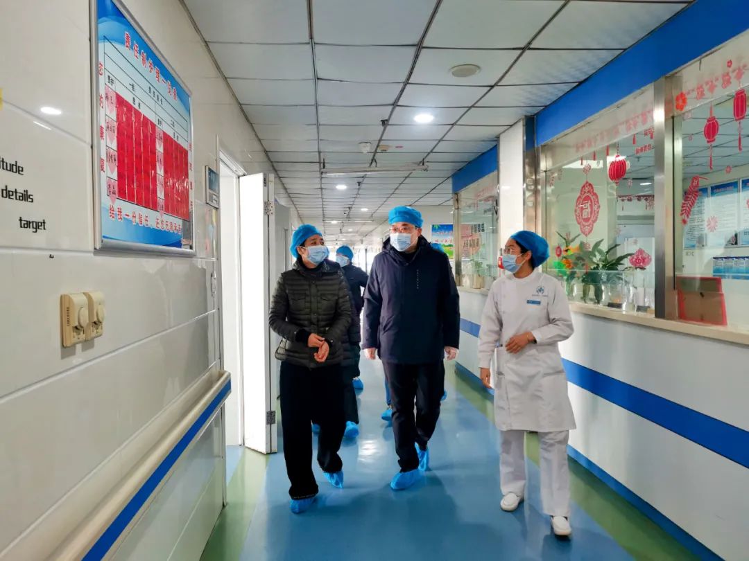 △郝軍英到醫(yī)院看望長(zhǎng)期滯留人員。