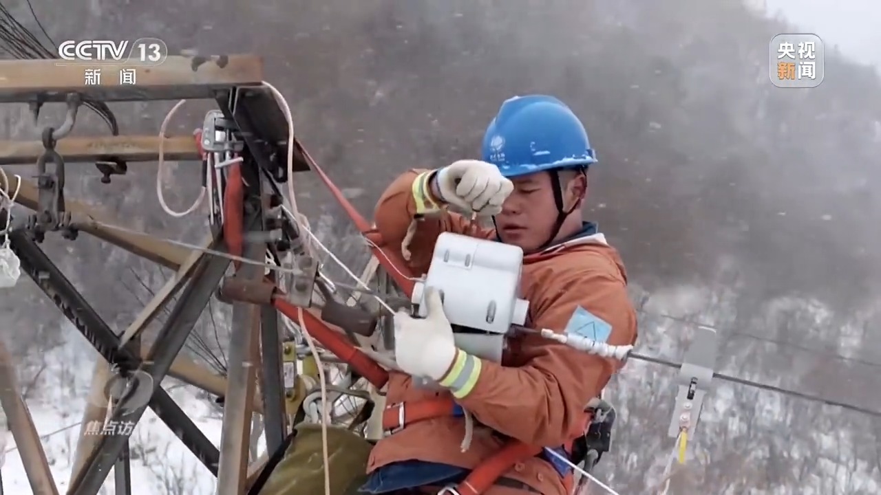 伴著2025春節(jié)的來臨,一場降雪為秦嶺披上銀裝。國網(wǎng)寶雞供電公司110千伏秦嶺融冰變電站,一臺(tái)安裝在輸電鐵塔上的監(jiān)測設(shè)備發(fā)生故障,工作人員正在商討對(duì)策。