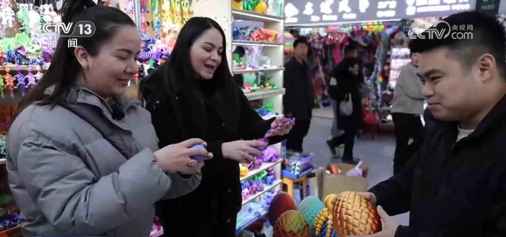 來自哥倫比亞的卡特琳娜告訴記者,每年開市她都會來,就是為了尋找最新的貨品,在全球市場搶占先機。這家經(jīng)營3D打印玩具的店是她的第一站,也讓她立即決定下單。