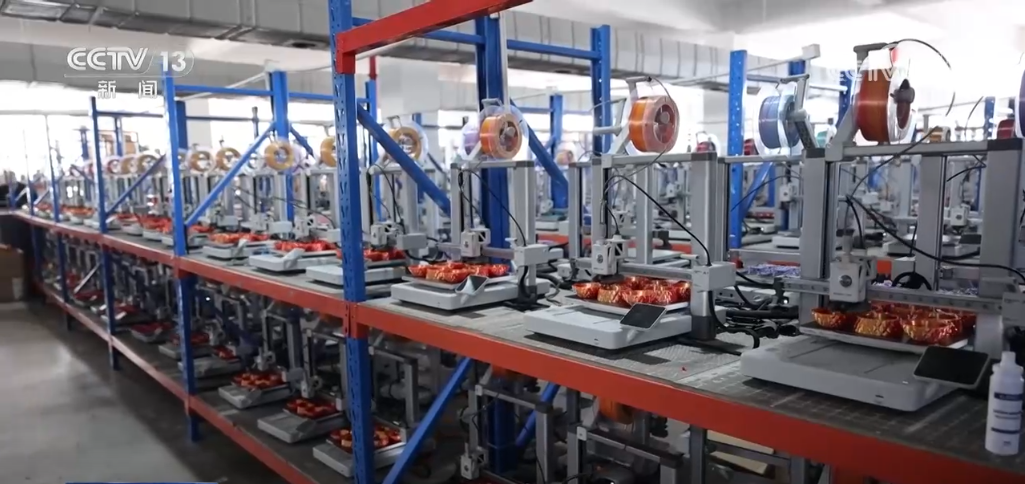 工廠負(fù)責(zé)人告訴記者,他的產(chǎn)品幾乎一直在海外電商平臺排名第一,秘訣之一就是打印的原材料。為了研發(fā)這個三色的材料,團隊花了近四個月的時間。但也讓產(chǎn)品獲得了獨特優(yōu)勢。在打印車間的樓上就是占地面積5200平米的耗材車間,近50臺機器同時開動,全力生產(chǎn)。