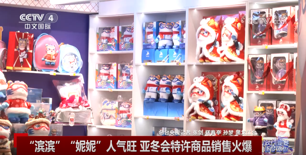 本屆亞冬會上,受到人們關(guān)心和喜愛的,除了場上拼搏的運(yùn)動員,還有那對可愛的吉祥物——以東北虎為原型設(shè)計(jì)的“濱濱”和“妮妮”。亞冬會開幕以來,“濱濱”和“妮妮”人氣持續(xù)上升,帶動相關(guān)商品熱銷。
