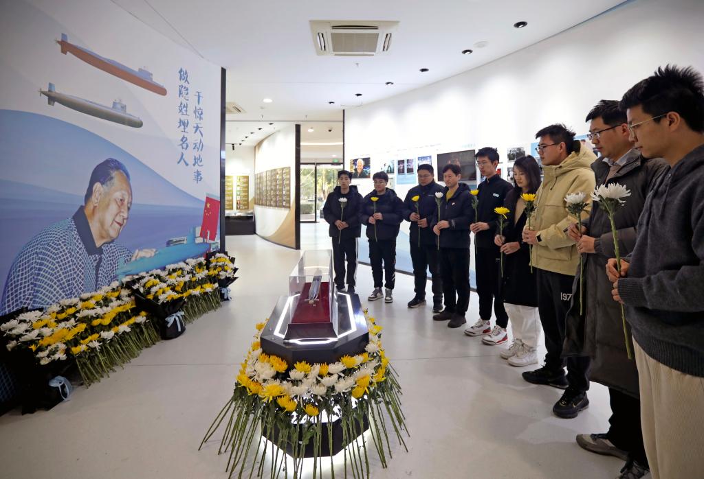 靈堂內(nèi)的許多花圈,落款沒有姓名。這些花圈來自黃老之前工作單位的同事們,這些新時代的“黃旭華們”,是無數(shù)個隱姓埋名的科技工作者。他們正以實(shí)際行動,傳承著黃老的“深潛精神”。