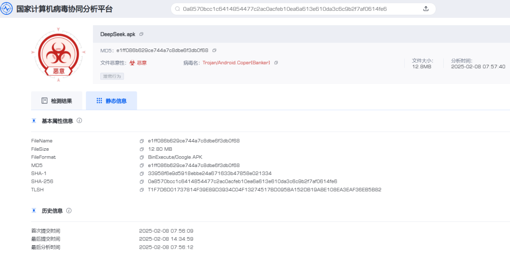 關(guān)于針對(duì)我國(guó)用戶的仿冒“DeepSeek”官方APP的手機(jī)木馬病毒的預(yù)警報(bào)告