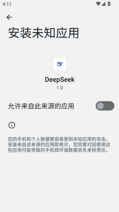 近日,國(guó)家計(jì)算機(jī)病毒應(yīng)急處理中心和計(jì)算機(jī)病毒防治技術(shù)國(guó)家工程實(shí)驗(yàn)室依托國(guó)家計(jì)算機(jī)病毒協(xié)同分析平臺(tái)(virus.cverc.org.cn)在我國(guó)境內(nèi)捕獲發(fā)現(xiàn)針對(duì)我國(guó)用戶的仿冒我國(guó)國(guó)產(chǎn)人工智能大模型“DeepSeek”官方APP的安卓平臺(tái)手機(jī)木馬病毒,如圖1、圖2所示。