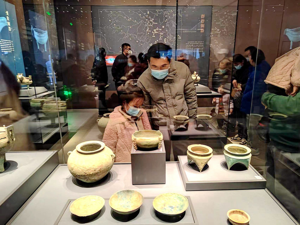 踏上館內(nèi)玻璃棧道,仿若一步千年。腳下戰(zhàn)國瓦礫層清晰可見,青銅車馬器構(gòu)件低語著戰(zhàn)國烽煙,“越王者旨于賜劍”見證亂世爭伐,楚金幣布成的“金山”如同暗夜繁星,鄂君啟金節(jié)上篆刻著中國最早的關(guān)稅密碼……“我們不做‘百科全書’,只講好本土故事?!卑不粘幕┪镳^副館長常遠霞告訴記者,去年旅游高峰期這里日均接待游客超2萬人。
