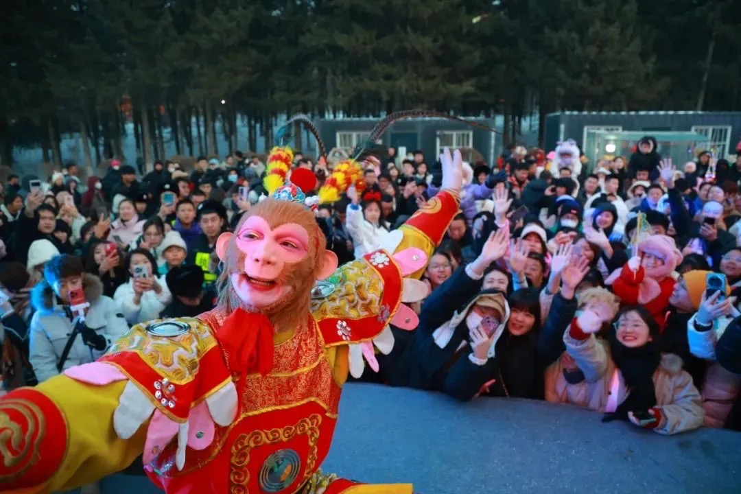 作為長春動植物公園夜游項(xiàng)目的保留節(jié)目,由演員王慶峰扮演的孫悟空被網(wǎng)友稱為“雪餅猴”。而為了“投喂”雪餅猴,來自五湖四海的游客往往提前三四個(gè)小時(shí)守候在“五指山”前。