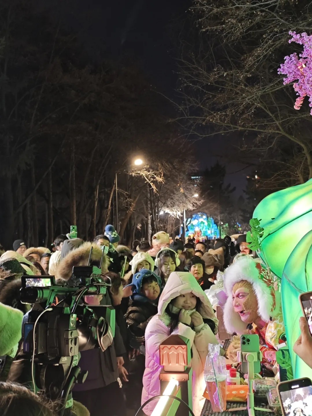 傍晚時(shí)分,大量游客冒著嚴(yán)寒涌入長春動植物公園,早早在人工搭建的“五指山”下等待“雪餅猴”……