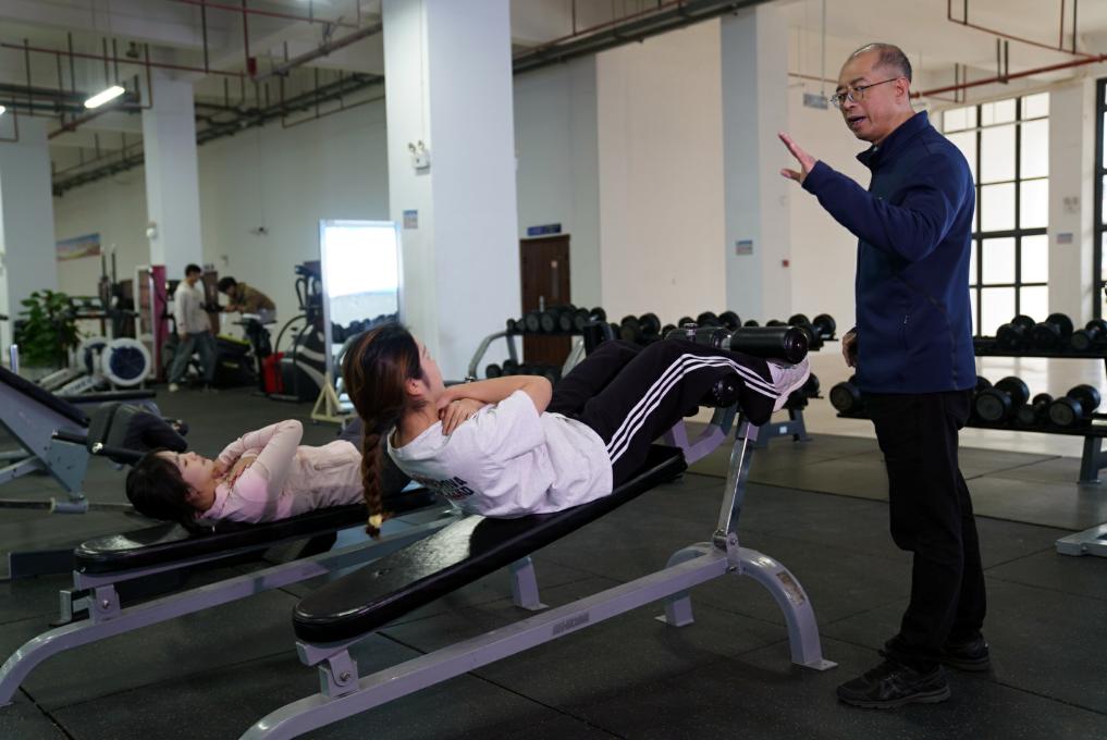 2月17日,在廣西體育高等專(zhuān)科學(xué)校,韋軍在指導(dǎo)學(xué)生進(jìn)行體育鍛煉。新華社記者 陳露緣 攝