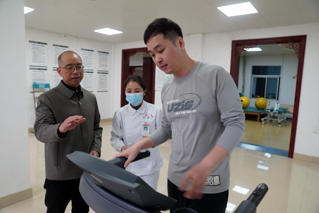 2月18日,韋軍在廣西南寧市西鄉(xiāng)塘區(qū)衡陽(yáng)街道南鐵社區(qū)衛(wèi)生服務(wù)中心走訪,了解衛(wèi)生服務(wù)中心對(duì)群眾進(jìn)行運(yùn)動(dòng)指導(dǎo)的情況。新華社記者 陳露緣 攝