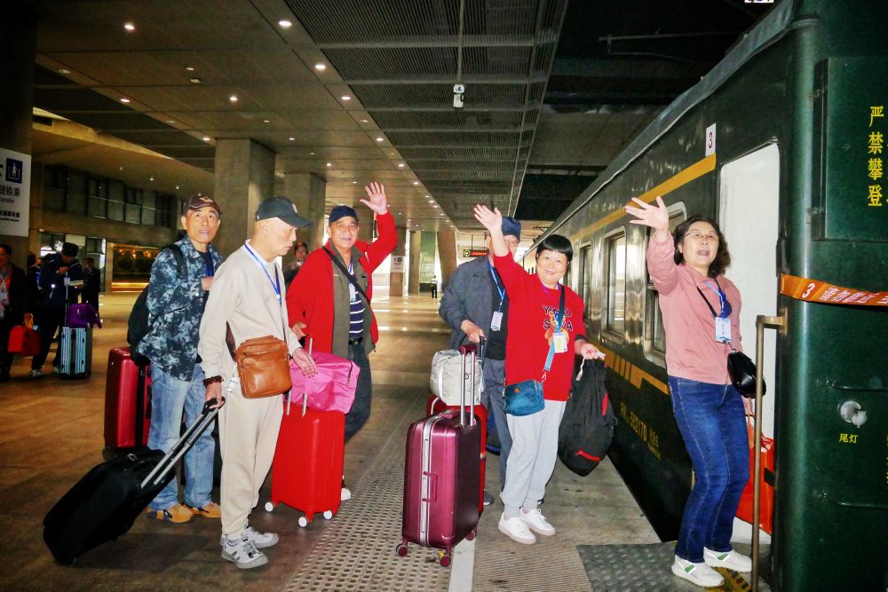 2024年4月20日,銀發(fā)旅客在上海南站乘坐專(zhuān)列旅游。新華社發(fā)(劉衛(wèi)興攝)