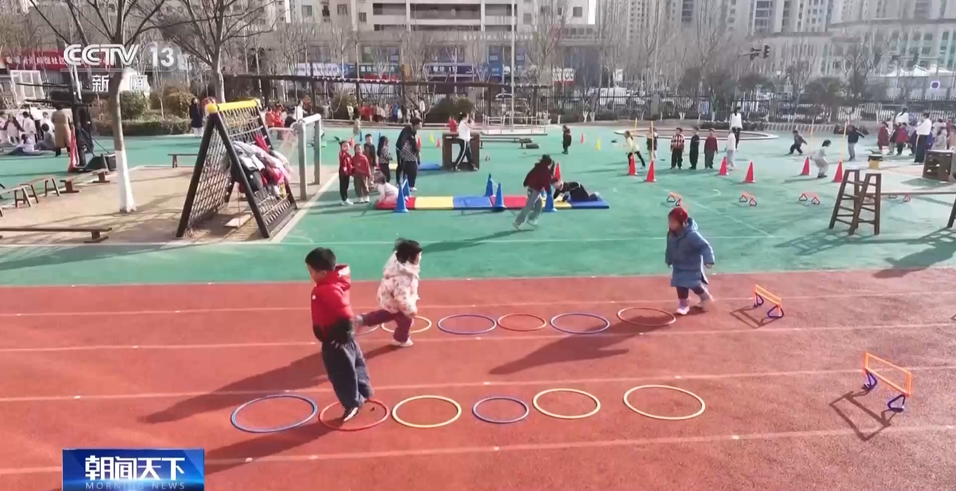 上午9時(shí)多,記者來(lái)到日照市的一家幼兒園時(shí),孩子們正在做早操。這邊都是3歲以上幼兒園小班到大班的孩子。而在另一片場(chǎng)地,一群2歲多的托班“小小孩”,正在老師的帶領(lǐng)下做游戲。