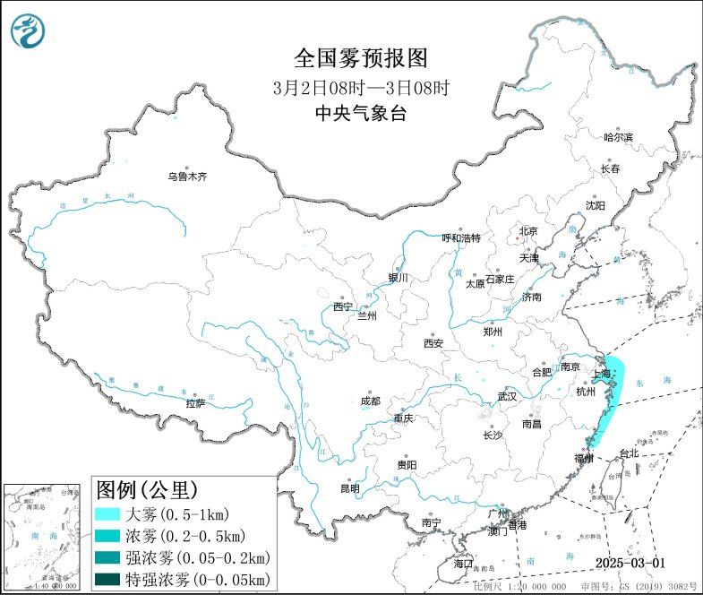 預(yù)計(jì),3月2日白天至夜間,長(zhǎng)江口及杭州灣附近海域、舟山群島附近海域、浙江沿岸海域、上海港、寧波港將有能見度不足1公里的濃霧。