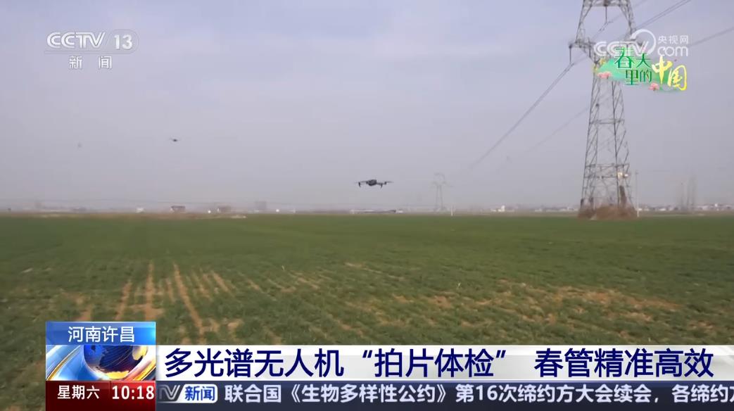 央視網(wǎng)消息:今年,全國(guó)冬小麥面積保持穩(wěn)定。目前,大部分地區(qū)冬小麥已進(jìn)入返青起身期,在拔節(jié)孕穗。眼下,河南許昌的348萬(wàn)多畝小麥陸續(xù)返青,進(jìn)入促進(jìn)苗情轉(zhuǎn)化升級(jí)、實(shí)現(xiàn)單產(chǎn)提升的關(guān)鍵期。今年,當(dāng)?shù)剡\(yùn)用多光譜無(wú)人機(jī)等智能設(shè)備,精確計(jì)算麥田水肥需求,讓春季田間管理更精準(zhǔn)、高效。