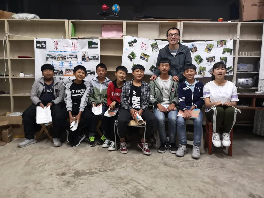 圖為李微楠和云南紅河州建水縣第四中學的學生在一起。(受訪者供圖)
