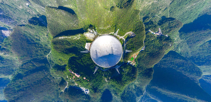 2024年9月25日拍攝的位于貴州省平塘縣的“中國(guó)天眼”(無人機(jī)全景照片,維護(hù)保養(yǎng)期間拍攝)。新華社記者 歐東衢 攝