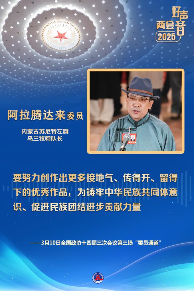“在內(nèi)蒙古大地上,活躍著75支烏蘭牧騎隊伍,有3000多名隊員,每年開展演出1萬多場。”阿拉騰達來委員說,要努力創(chuàng)作出更多接地氣、傳得開、留得下的優(yōu)秀作品,為鑄牢中華民族共同體意識、促進民族團結進步貢獻力量。