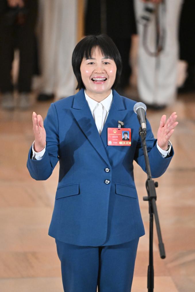3月11日,第十四屆全國人民代表大會第三次會議第三場“代表通道”集中采訪活動在北京人民大會堂舉行。這是全國人大代表譚新萍接受媒體采訪。新華社記者 胥冰潔 攝