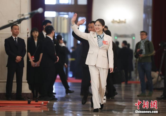 全國人大代表、河南南陽雅民農牧有限公司總經理趙昭接受采訪。中新社記者 富田 攝