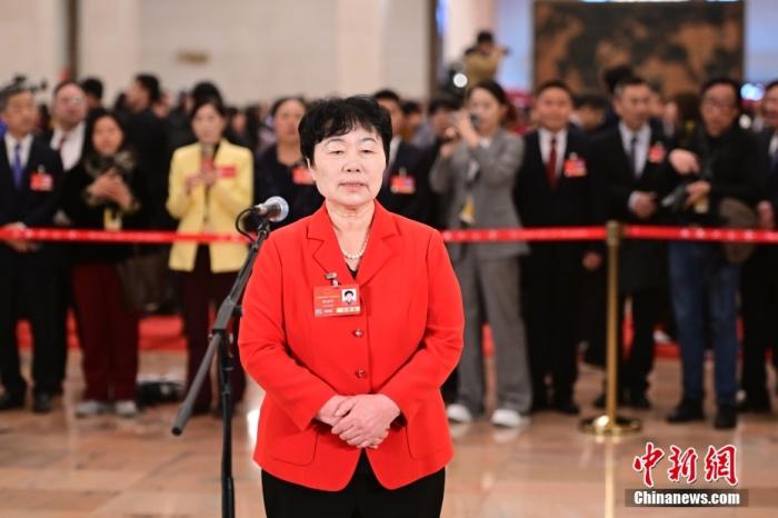 全國人大代表、天津東麗區(qū)華明街胡張莊村黨支部書記楊寶玲接受采訪。中新社記者 田雨昊 攝