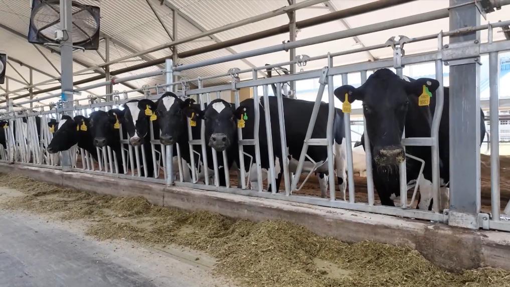 走進位于內蒙古呼和浩特市土默特左旗的敕勒川生態(tài)智慧牧場,奶牛們住進了“別墅”,在飼喂機器的幫助下品嘗午餐,水足飯飽后躺下休息。