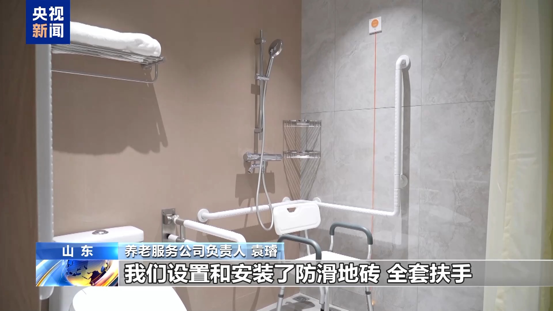 養(yǎng)老服務公司負責人 袁璿:在比較容易發(fā)生危險的衛(wèi)生間區(qū)域,我們設置和安裝了防滑地磚、全套扶手、按動式和拉繩式的緊急呼叫系統(tǒng),通過不斷豐富供給,提升我們的服務質(zhì)量。
