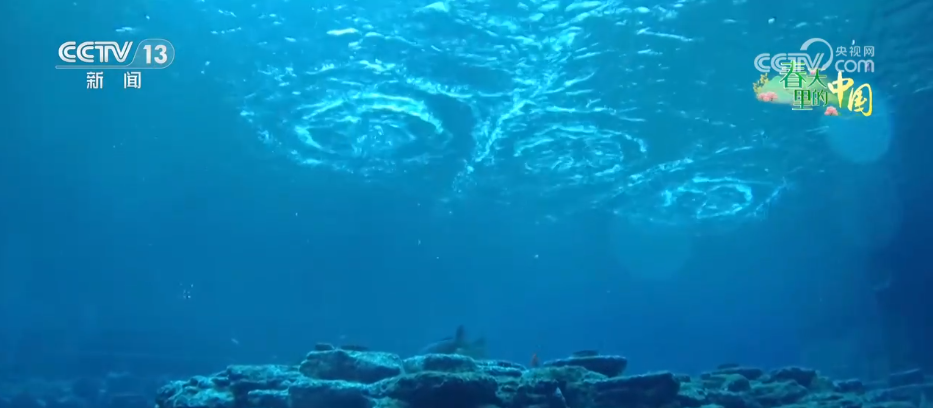 感受了從天空到地面的春色,繼續(xù)把視角往下,來到泉下的世界。經(jīng)過有關部門的允許,把水下無人機深入泉底,在這個視角里,清澈的泉水中綠意斑駁、魚群穿梭,活力滿滿。實際上,趵突泉的泉水一年四季恒定在18℃左右,這里的水下世界四季如春。有這么一句話:濟南的春天是從泉水中醒來的,而這句話在趵突泉公園有了具象化的體現(xiàn)。